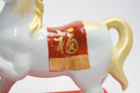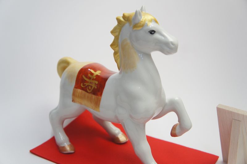 2026年の干支は、「丙午(ひのえうま)」 「丙」は万物を明るく照らす太陽を表し、 「馬」は力強く活発で、行動力・エネルギー・前進の象徴として「物事がうまくいく、幸運が駆け込んでくる」など、縁起が良い。 また、並外れた走力・馬力・能力があるため、馬を家に飾ると名声を呼ぶと言われています。 こちらの干支は美しい色絵磁器で、力強い雰囲気と気品のある置物です。 新年の招福を祈念して、お飾りください。