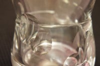 透明度の高いクリスタルガラスのグラスに、半分から下のみもう一度ガラスを重ね、ランダムに削ぎ落としています。 どっしりとして安定がよく、口触りは薄めに作ってあります。 贈り物としてもオススメです。